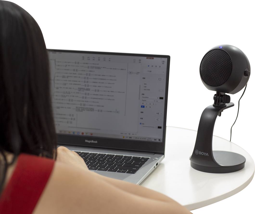 BY-PM300 to biurkowy mikrofon USB, kompatybilny z większością telefonów z systemem Android i komputerów z systemem Windows/Mac, z doskonałą kardioidalną charakterystyką, BY-PM300 koncentruje się na zbieraniu dźwięku przed mikrofonem i skutecznie redukuje niepożądane szumy tła, jest idealny do nagrywania w domowym studio, podcastingu, występów wokalnych i innych.